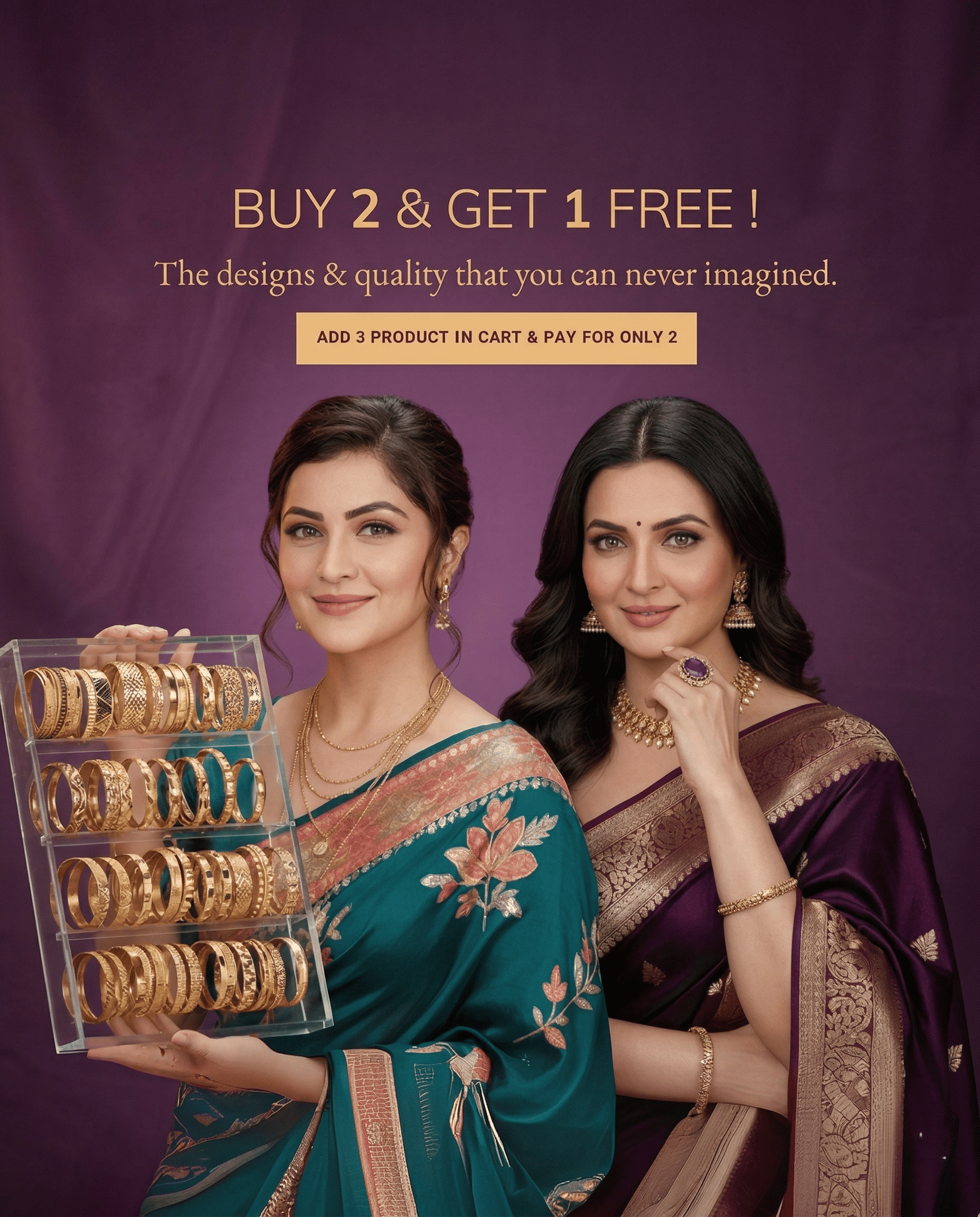 Buy 2 Get 1 FreeStylish Bangles for Women | Trendy & Elegant Bangles Set (1 Pair)
